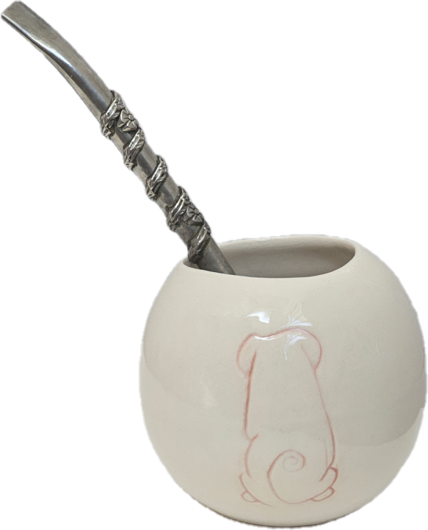 Mate de cerámica artesanal de veterinaria isleña con la silueta de un perrito pug